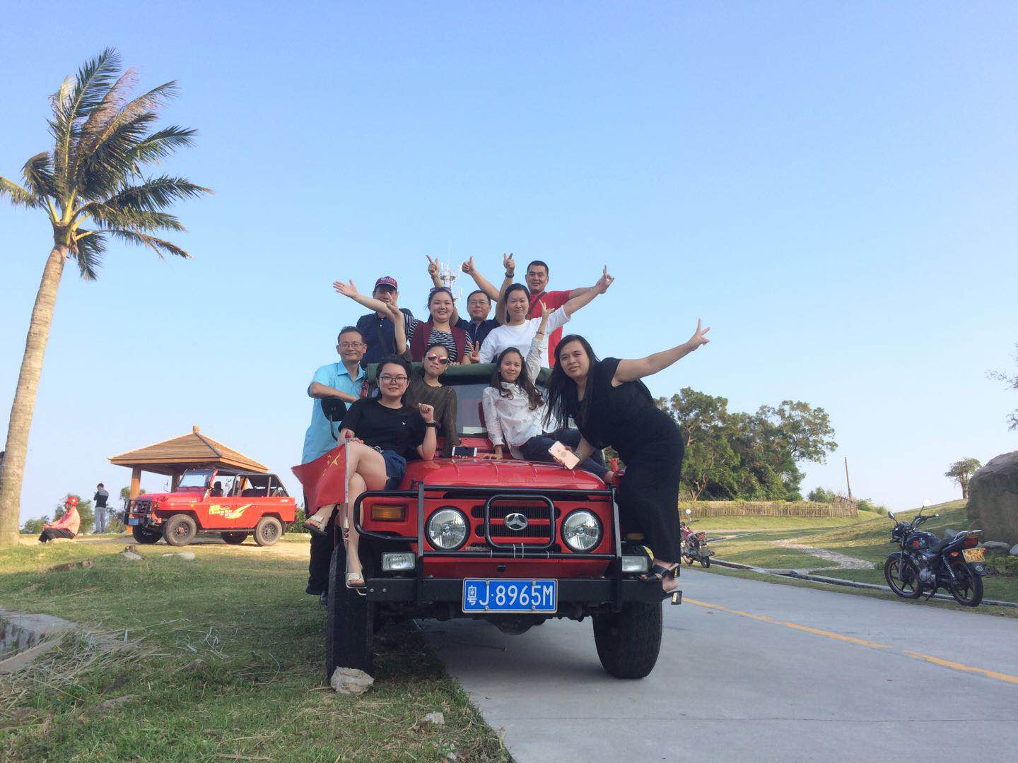 金秋十月,秋高氣爽的季節(jié)。2017年10月21~22日光大公司組織員工到江門臺山下川島兩天游。第一天早上7:30,各位家人準時在寫字樓集合出發(fā),歷經四小時到達了下川島王府洲旅游區(qū)。旅游區(qū)位于下川島南部的南澳灣,海灣呈月牙形,三面奇峰環(huán)繞,環(huán)境幽靜。海濱沙灘長1600米,海水清澈、灘平浪靜、白沙細軟,為天然優(yōu)質的海濱浴場。大家紛紛卸下身上厚重的行李,攜家眷好友在沙灘上追波逐浪,玩得不亦樂乎;亦或者陪伴小孩,堆沙堡,覓尋魚蟹;也有家人選擇刺激的探險之旅,駕上越野車馳奔于林間小道,路上一望無際的美景盡收眼底。到達山頂上,大自然那鬼斧神工鐫刻出一幅幅美不勝收的畫面,換來了家人們情不自禁的感嘆,面對此情此景,家人們紛紛在車上擺好pose,拍下了合照紀念,并留下豪言“戰(zhàn)狼3拍攝現場”。